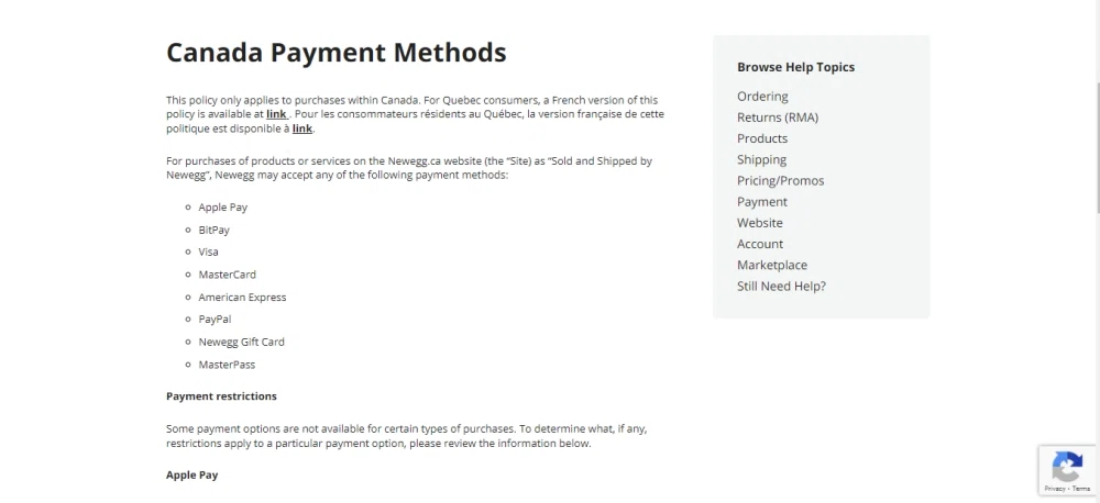 Canada Payment Methods - Newegg Knowledge Base Newegg does not accept Newegg Gift Cards for the following types of purchases: Newegg Gift Cards, whether in the form of a virtual e-card or an actual physical gift card; Third-party gift cards, whether in the form of a virtual e-card or an actual physical gift card; Subscription orders; PayPal. Newegg does not accept PayPal for the following ...