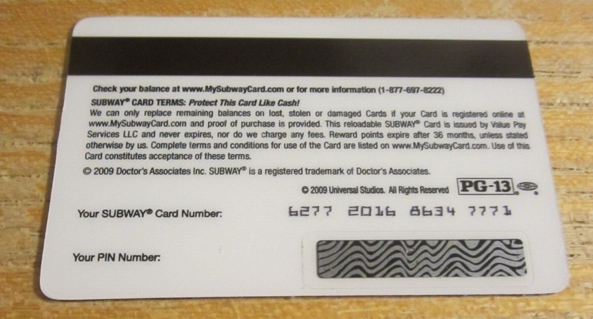 Subway Gift Card | GiftCards.com® Official Lost Subway Gift Card. Subway will not replace your Subway Gift Card unless it was previously registered on their website. You can contact their gift card customer support team for additional help at 1-877-697-8222. If your Subway Gift Card was purchased from GiftCards.com, please contact our customer support team for information on a possible ...