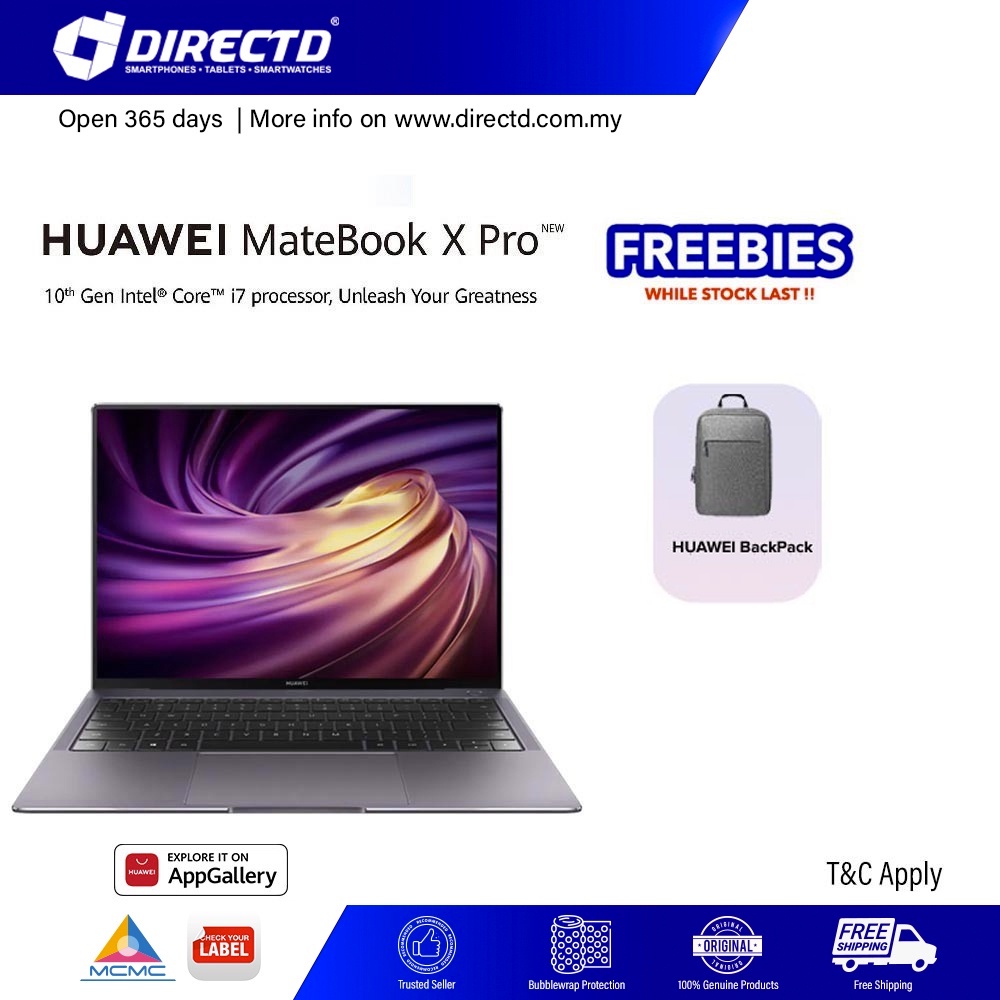 HUAWEI MateBook X Pro i7 2020 (Space Grey) / i7-10510U/ 16GB/ 1TB SSD/ MX250-2GB/ 13.9-Inch /WIN 20/ Bluetooth Mouse/ BackPack +Free Premium Gift